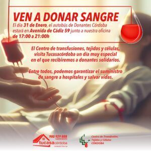 El próximo 31 de enero, de 17:00 a 21:00 horas, el autobús de donación de sangre estará en nuestra oficina del Sector Sur (Avda. de Cádiz nº 59). Contamos contigo para ayudar a salvar vidas. 🙌