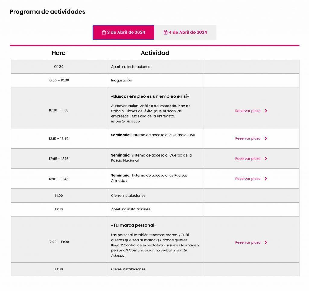 El evento, en su cuarta edición, promete ser un espacio dinámico donde los asistentes podrán interactuar directamente con empresas, conocer de cerca las ofertas de empleo y participar en seminarios y talleres enfocados en las tendencias actuales del mercado laboral. Temas como la autoevaluación, el análisis del mercado de trabajo, las claves del éxito en la búsqueda de empleo, y la importancia de la marca personal, serán algunos de los puntos centrales de las sesiones, impartidas por expertos de primer nivel.