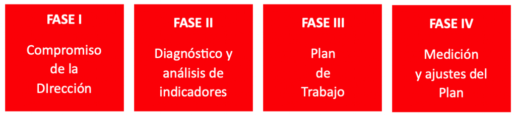 Este programa se llevará a cabo mediante un sistema de gestión basado en la mejora continua aplicando el ciclo PHVA (Planificar, Hacer, Verificar y Actuar), que se ha de concretar de forma personalizada para cada entidad. Podemos enumerar las siguientes fases de implantación: