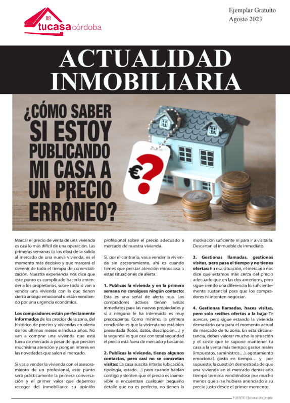 En esta nueva revista inmobiliaria del mes de agosto, vamos a hablar sobre cómo saber si estamos publicando nuestra casa a un precio erróneo; además de que cuando piensas en una vivienda, ya sea bien para alquiler o para compra, es necesario considerar distintos condicionantes que conviene no pasar por alto como por ejemplo su orientación.