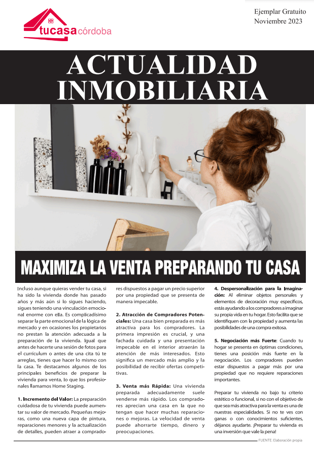 En esta nueva revista inmobiliaria del mes de noviembre, vamos a hablar de cómo maximizar la venta de una vivienda preparándola de la mejor forma posible, con el uso del home staging.