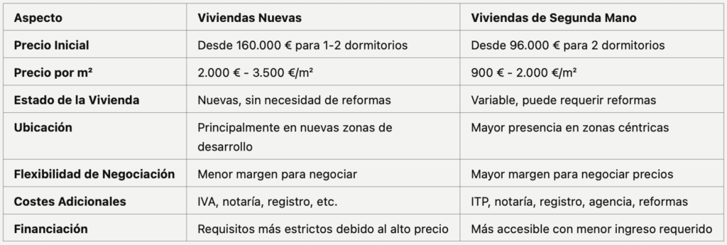 Estos precios son significativamente menores que los de las viviendas nuevas, que parten desde 160.000 € para propiedades de tamaño similar.
